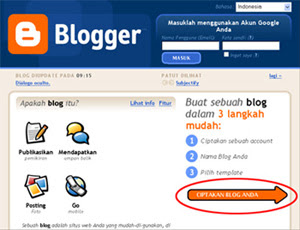 2.Masuk kehalaman bloger,caranya klik www.blogger.com maka akan muncul halaman ini